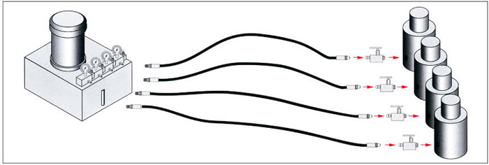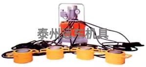 二、超薄型同步千斤顶用途 本公司生产的TRSM 薄型同步千斤顶,设计有安全保压装置,内置卸压阀防止过载,以保护千斤顶以利于安全操作。并设计四组截止阀,可随时控制千斤顶同步升与降,该装置的连接,采用的是高压胶管和螺纹接头连接,具有使用快捷,并克服快速传统接头漏油缺点主要用于电力、建筑、机械制造、矿山、铁路桥梁、造船等多种行业的设备安装起顶拆卸作业。