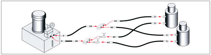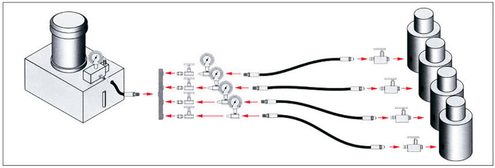 三、超薄型同步千斤顶使用方法 1、如泵体的油量不足时,需先向泵中加入工作油(32#抗磨液压油)才能工作。 2、估计起重量,切忌超载使用。 3、确定起重物的重心,选择千斤顶着力点,同时必须考虑到地面软硬程度是否垫以坚韧的木材,以免起重时产生倾倒之危险。 4、千斤顶将重物顶升后,应及时用坚韧的木材将重物支撑牢,禁止将千斤顶作为支撑物使用,以免负荷不均衡,产生倾倒之危险。 5、使用时先将手动泵的快速接头与顶对接,然后选好位置,将油泵上的放油螺钉旋紧,即可工作。将放油螺钉旋松,油缸卸荷。 6、电动泵请参照电动使用说明书。 |
