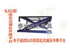 SJG型、电子遥控SJG型系列固定式液压升降平台:该升降平台广泛适用于机械、电子、纺织、化工、轻工等行业的各种生产流水线,凡有位置高度差的地方均可使用。该产品的使用可大大降低工人的劳动强度,提高生产效率,提高经济效益,也可代替价格昂贵的载货电梯。